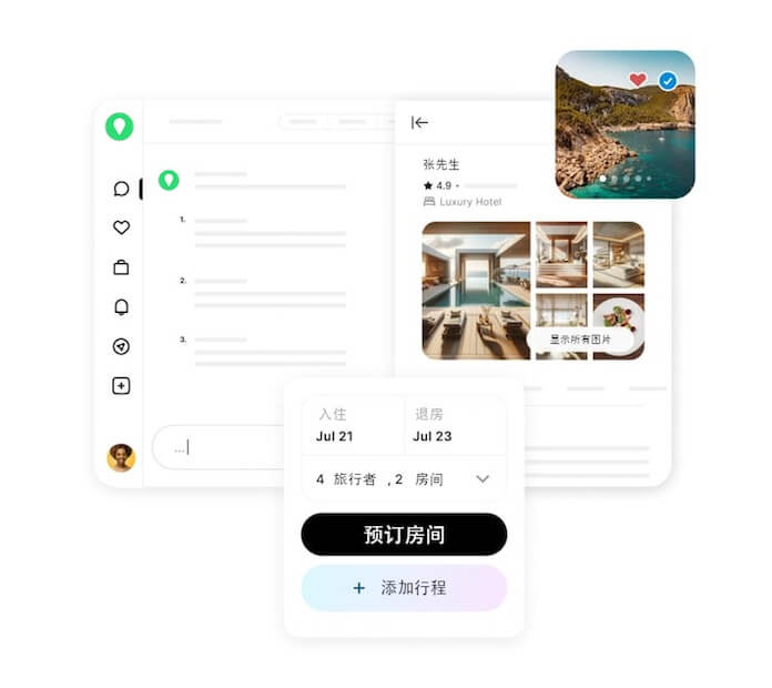 在几秒钟内,我们将为您想去的任何地方策划可定制的行程,食住行最优惠方式在您的请求中包含具体推荐信息,如何降低旅游费用,如何享受免费旅游等,以便我们可以个性化您的计划。